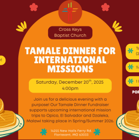 Tamale Dinner Fundraiser for International Missions Saturday, December 20 • 4:00 PM